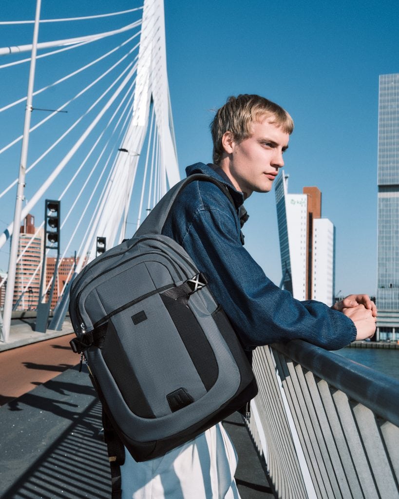 Wie schon in früheren Kollektionen bleibt Nachhaltigkeit ein zentrales Thema. Die Linie Eco Coated, gefertigt aus 100 % recyceltem Polyestergeweben, demonstriert den Anspruch, umweltbewusstes Design mit Langlebigkeit und Stil zu verbinden. Diese Haltung findet in Rotterdam ihren natürlichen Bezugspunkt – einer Stadt, die als Labor für nachhaltige Architektur gilt und urbane Räume immer wieder neu denkt.