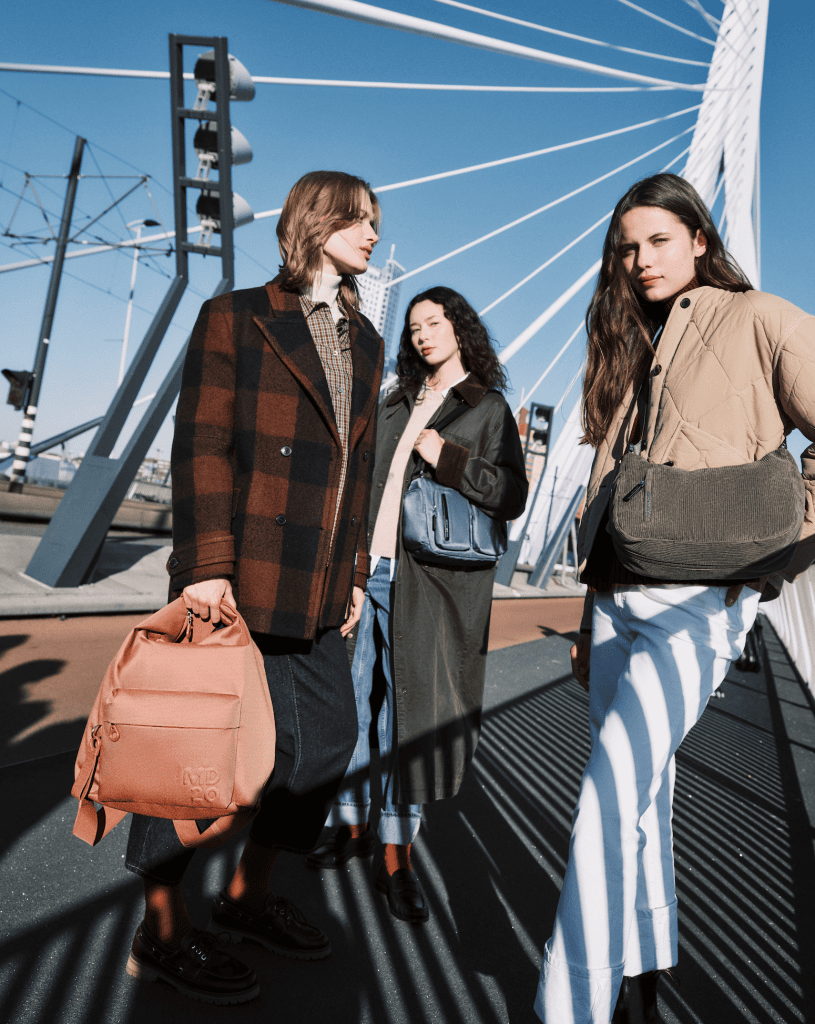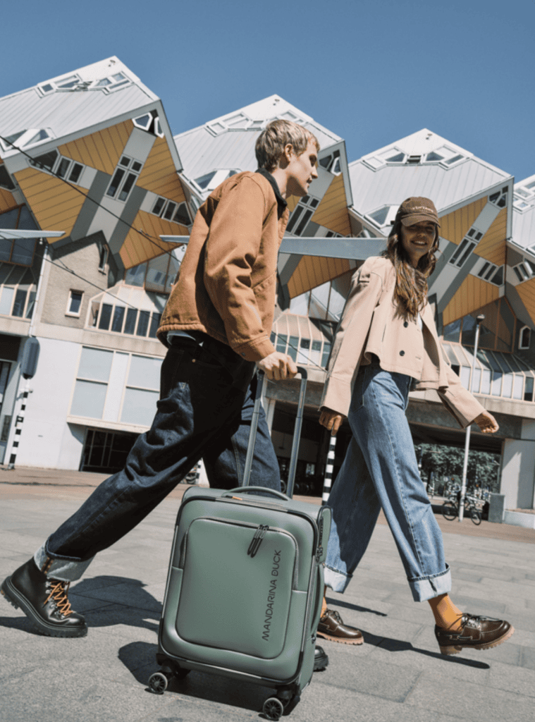Rotterdam wird so zur Bühne, auf der Innovation und Ästhetik zu einer gemeinsamen Sprache finden – genau wie in der Kollektion selbst. Mandarina Duck interpretiert das Reisen als Kunstform: als Bewegung, die Freiheit, Neugier und Design vereint. Form und Funktion treten in Dialog, Materialien werden zu Erzählungen, Farben zu Emotionen. Die F/W25-Kollektion übersetzt diesen Geist in Stücke, die sowohl leicht als auch durchdacht sind – entworfen für urbane Nomaden, die Komfort und Charakter verbinden möchten.