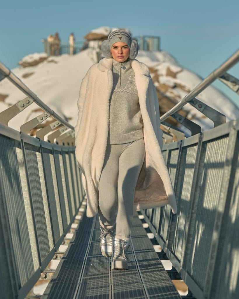 Das Event markiert den Auftakt zur zweiten Ausgabe des GUESS Winter Projekts, das nach dem Erfolg des Vorjahres erneut Luxus-Skiorte in den Alpen mit exklusivem Design und stilistischen Statements bereichert. Die Show auf dem Glacier 3000 war nicht nur ein visuelles Spektakel, sondern auch der Startschuss für eine strategische Partnerschaft zwischen GUESS und der Destination. Neben der beeindruckenden Laufsteg-Inszenierung setzte die Marke mit gebrandeten Outdoor-Möbeln und exklusiven Foto-Spots weitere Akzente, die den Charme der hochalpinen Kulisse unterstreichen. Inmitten schneebedeckter Gipfel verband sich moderne Mode mit der rauen Schönheit der Natur, während der außergewöhnliche Veranstaltungsort der Inszenierung eine fast surreale Anmutung verlieh. Die Marke positioniert sich damit nicht nur als Vorreiter in der Modewelt, sondern auch als kreative Kraft, die ikonische Schauplätze mit avantgardistischem Design verbindet.