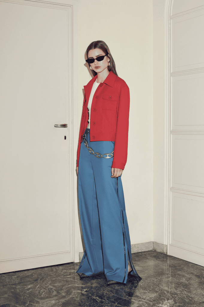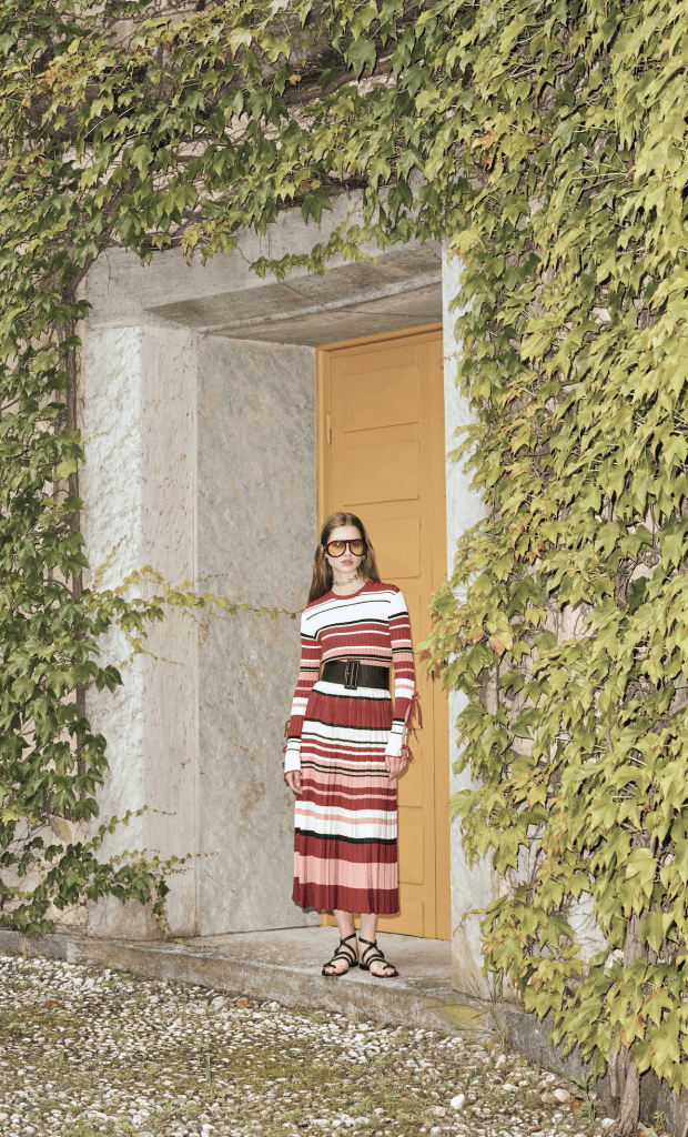 Details wie geometrische Stickereien, inspiriert von klassischer italienischer Architektur, sowie Falten, die die Stärke und Eleganz römischer Säulen widerspiegeln, und Drapierungen, die an historische Gewänder erinnern, sind kunstvoll in die Kollektion integriert. Streifen nehmen Bezug auf die berühmten italienischen Küsten und die traditionelle Kleidung der Gondoliere, während Häkelarbeiten und Spitze die exquisite Handwerkskunst italienischer Kunsthandwerker zelebrieren. Die Pre-Spring-Kollektion 2025 von PORTS 1961 ist eine harmonische Verbindung aus Kreativität und der freudigen Essenz des Dolce Vita, angereichert mit Elementen aus den historischen Städten Italiens. Jedes Stück dieser Kollektion trägt das Erbe der Marke in sich, die den Geist des Reisenden mit luxuriöser, handwerklich perfekt gefertigter Mode vereint.