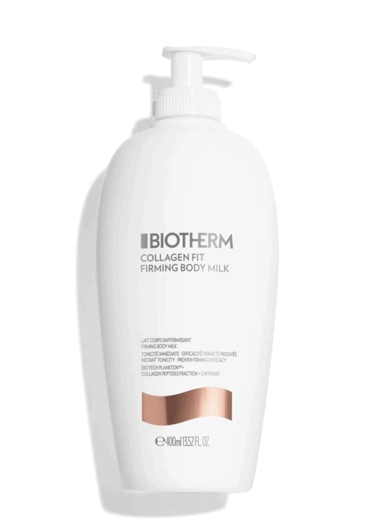 Biotherm Collagen Fit Firming Body Milk – diese straffende Körpermilch kombiniert Biotech-Plankton, Koffein und Kollagenpeptide für elastischere Haut. Die rosé-goldene Textur zieht schnell ein, der Duft aus Vanille, Pistazie und Bergamotte sorgt für ein luxuriöses Pflegegefühl. → douglas.de