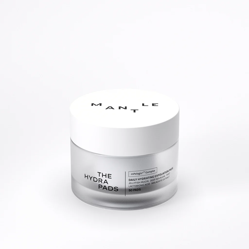 Mantle The Hydra Pads – die feuchtigkeitsspendenden Peeling-Pads kombinieren Quallen-Mucin, Arktikalgen und Lactobionsäure für ein sanftes Glow-Up. Die Haut wird erfrischt, geglättet und hydratisiert – ideal für die tägliche Anwendung. → mantleskin.com
